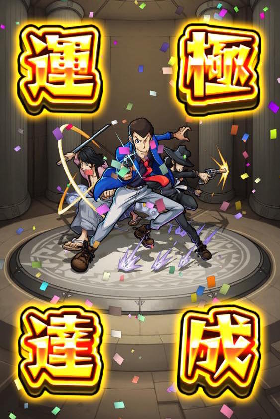 コラボキャラのルパンは、常設クエストでしかもラック関係なしのノーコン or 直ドロップのみで獲得できるってやつ。おかげで、時間気にしなくてできるもんだからがんばっちゃったv