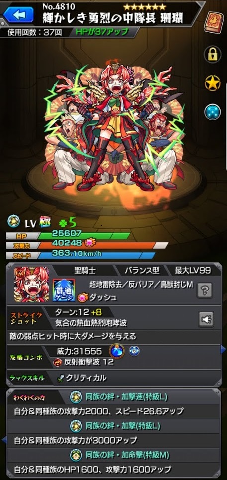 ●モンスト●祝☆珊瑚 獣神化! ×[PR]上記の広告は3ヶ月以上新規記事投稿のないブログに表示されています。新しい記事を書く事で広告が消えます。 ランキング参加中! ただいまコメントを受けつけておりません。 ●モンスト●祝☆珊瑚 獣神化! アプデ前のノマクエで使いまくってた 珊瑚。 属性別、火属性の1位なんだなコレ。 反射衝撃波が、結構なお気に入り! 獣神化:輝かしき勇烈の中隊長 珊瑚! さっそく英雄の証をつけ、実の厳選も(´▽`) スポットが解放されるようになったら、木ノマクエで使いまくる予定! PR ランキング参加中!