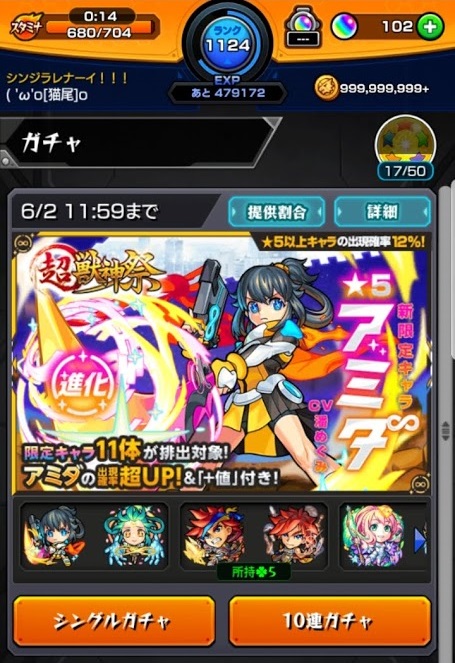 ●モンスト●超・獣神祭 新限定キャラ アミダ ×[PR]上記の広告は3ヶ月以上新規記事投稿のないブログに表示されています。新しい記事を書く事で広告が消えます。 ランキング参加中! ただいまコメントを受けつけておりません。 ●モンスト●超・獣神祭 新限定キャラ アミダ 超獣神祭に新限定キャラ「アミダ」登場!? 知らなかった・・・・・・ コラボやら属性限定等々、今年はとっても怪しい年だと思ってるんでスルー!! 今すぐ手に入れなければ・・・・・・ってわけでもなさそうだしね。 が、、、右手はおかまいなし!! 10連いってしまった!! ノブナガ(5体目)。 ここ最近、同じキャラの排出が凄いような気がする。 5体目のxx ってのが増えてきた。 持ってないキャラ、かなりあるのにな。 PR ランキング参加中!