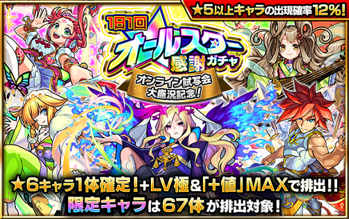 ●モンスト●オールスター感謝ガチャ 2020年6月26日~28日