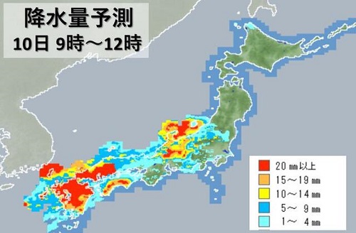 7月10日以降も停滞した梅雨前線に向かい温かく湿った空気が流入。