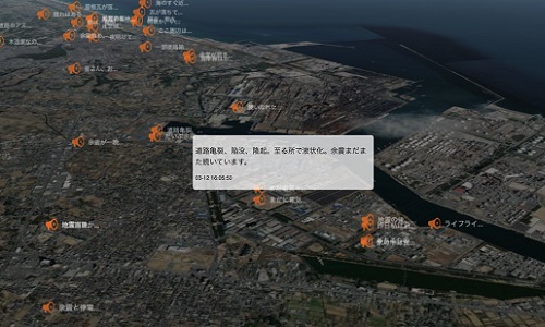 震災発生翌日までのウェザーニューズ「減災リポート」のデジタルアーカイブ。