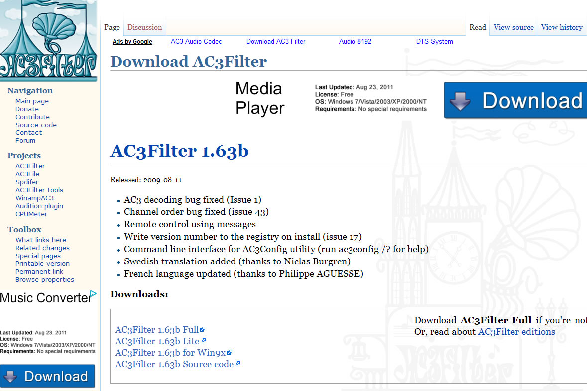さっそくこちらのDLページにいき、「AC3Filter 1.63b Full」ってのをDL&インストール