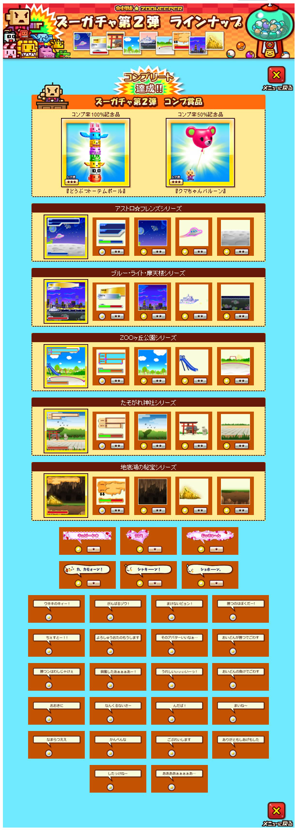 そうそう、今日のズーガチャで、第2弾のアイテムがコンプリート出来た