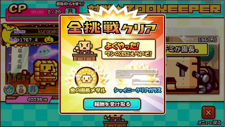 最後の対戦では、自分のレート+100のロボット園長が登場
