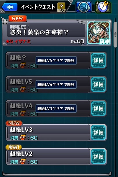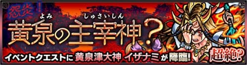 公式チャンネル100万人突破キャンペーンとして、最初の超絶クエスト「イザナミ」が生まれ変わって登場。