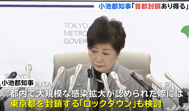 新型コロナウイルス対策会議後に開いた記者会見で、東京都の小池百合子知事都市封鎖(ロックダウン)の可能性に言及したことがトレンドに入ったみたい。