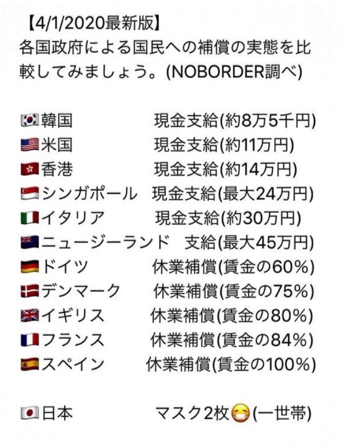 海外では、現金支給や休業補償が出されている中だったので、 マスク配布案 に落胆の声があがったようだね。