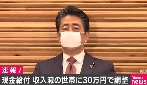 20年4月5日(日)現金給付 1世帯30万円 条件付き申告制