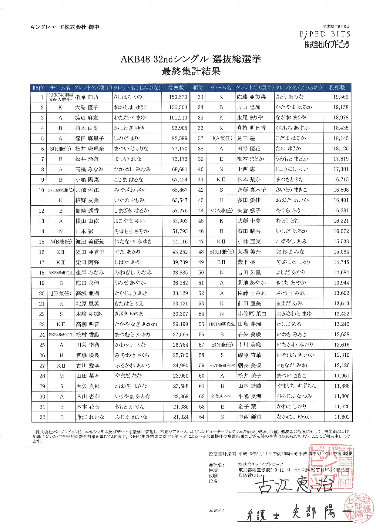 選抜総選挙 最終集計結果
